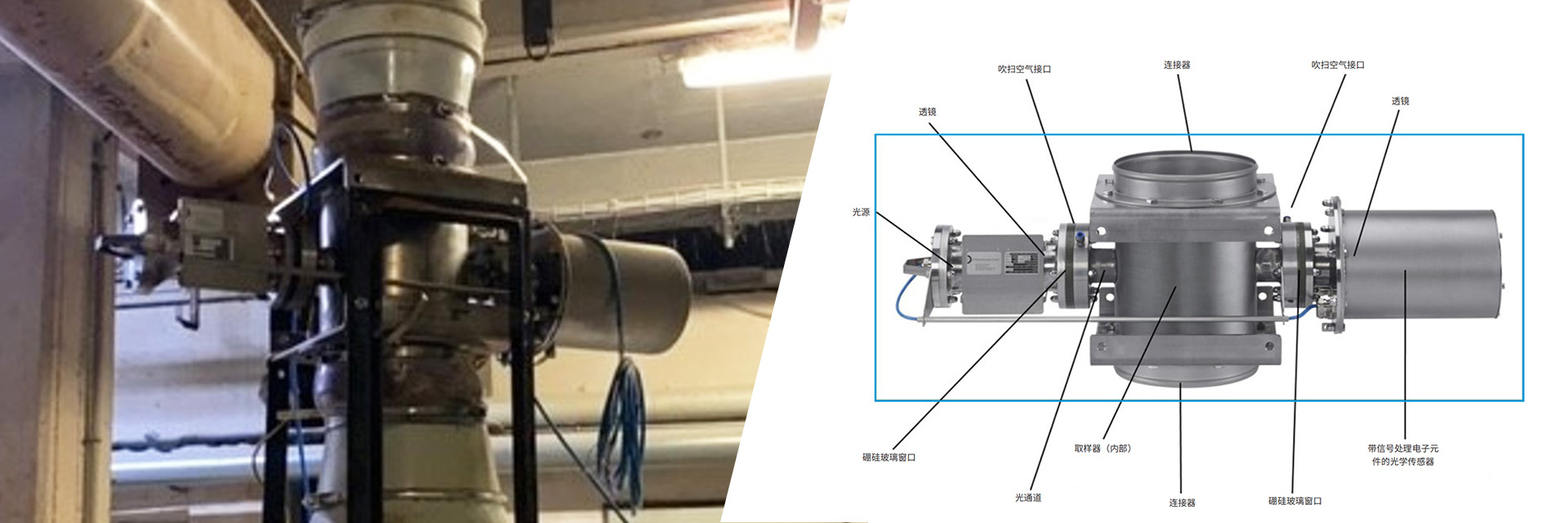 介可視在線粒徑分析儀是一款可對各類自由落體散裝物 料進行顆粒尺寸連續測定的測量儀器,其主要特點如下: ● 實時在線測量:無需取樣,可直接在流程中實時測量。 ● 超限報警功能:當顆粒尺寸超出預設限值時,可通過兩個 繼電器觸發報警。 ● 測量原理與防護:物料通過傳感器管道下落,代表性分流 連續進入光學測量系統檢測;光學元件由耐磨硼硅酸鹽玻璃保護,并通過吹掃空氣防止污染。
